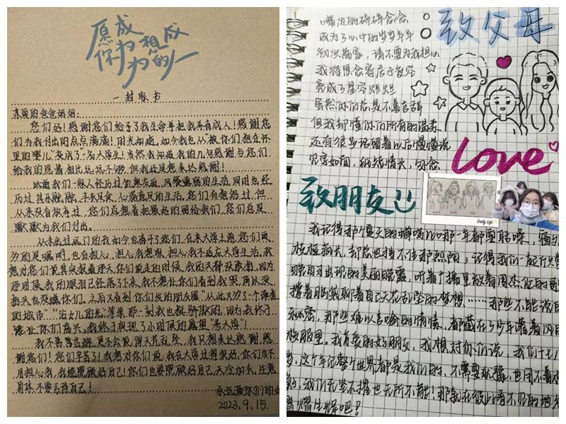 活动以“感恩”为主题,鼓励新生以手写书信、手绘等形式表达对家庭的思念和感恩之情。新生们或结合在大学的所见所闻、新生入学教育、学院素质拓展活动等与家人分享,或对自己即将开展的大学生涯进行规划,或流露对家人朋友的思念之情。“一封家书”活动在线上线下共征集230余份作品,新生们积极分享温馨的全家福照片,记录日常生活中的美好瞬间。