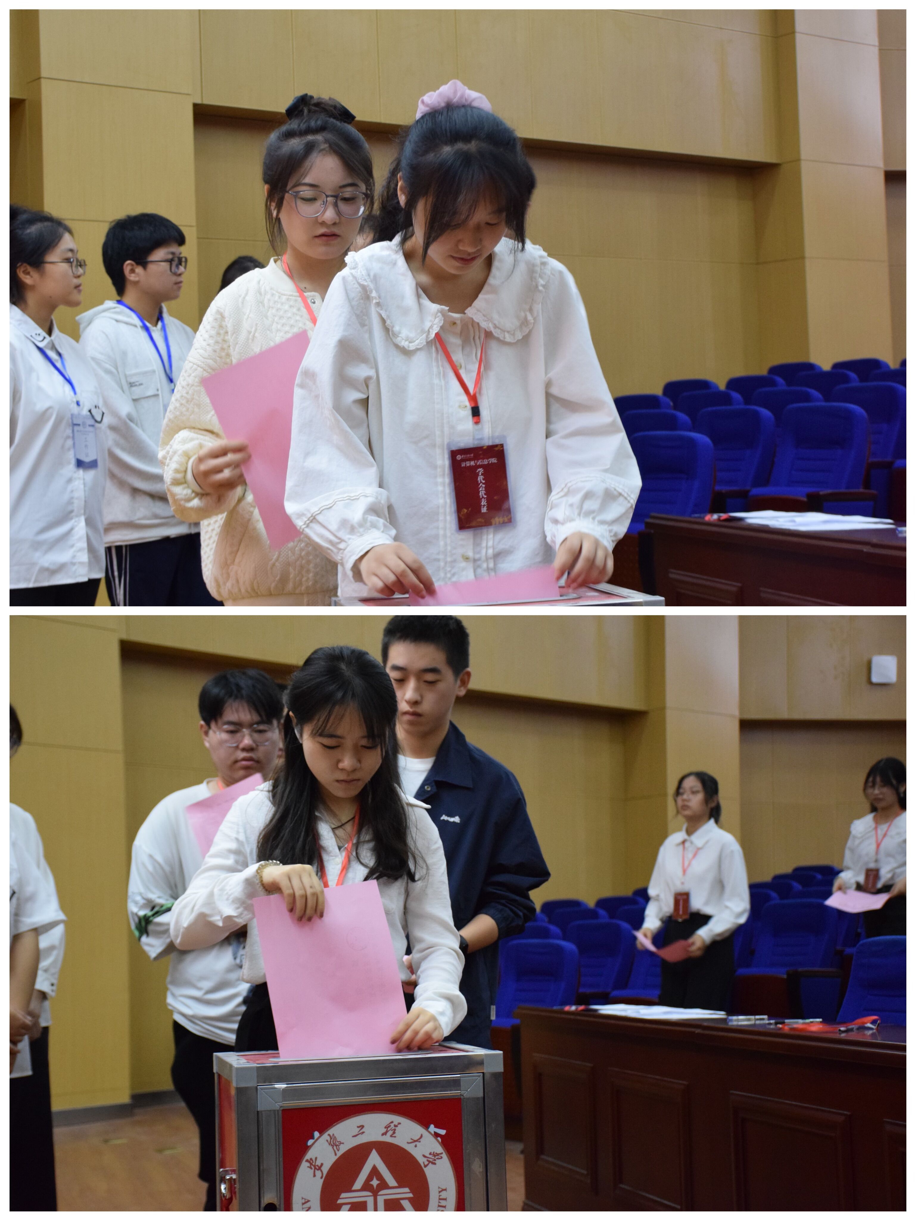 小组讨论环节,各代表团学习和讨论了会议精神、工作报告等。会议选举产生第七届学生委员会委员、主席团成员及校级学代会代表。