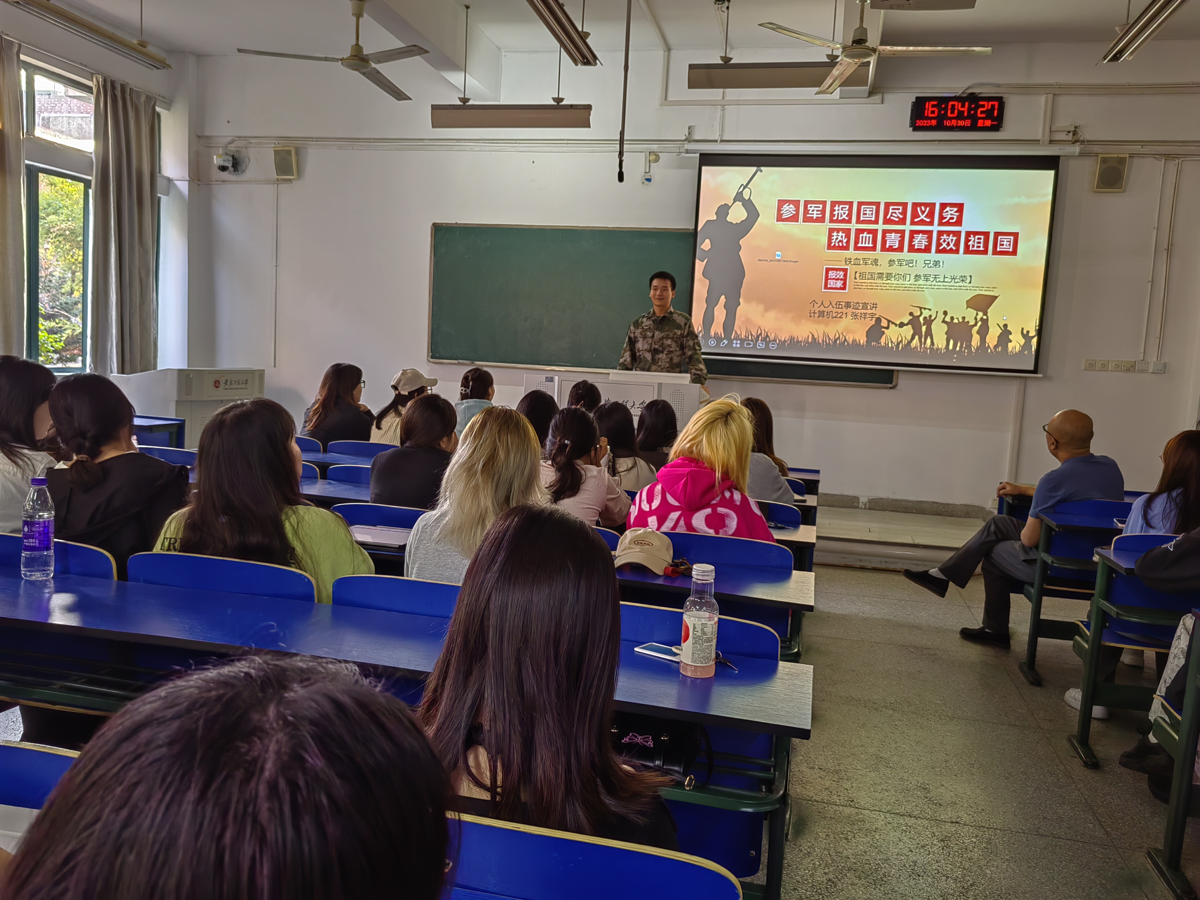 赵成婧向同学们介绍了大学生兵役政策、应征入伍条件以及服役待遇等方面的优惠政策,针对同学们比较关注的入伍体检、政治考核、复学助学等问题进行了详细说明,使在场同学们对大学生应征入伍的国家兵役政策有了较为全面和深刻的认识。她希望同学们将征兵入伍作为提升自我的机会,将个人青春风采融入祖国发展,积极响应国家征兵入伍的号召,投身国防建设的伟大事业。
