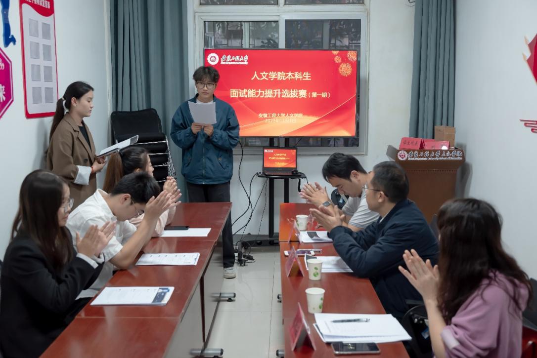为推深做实“共青团促进大学生就业行动”和“三全六专”育人实践,深化针对性培训,提升学生的就业能力和学生干部“我为同学办实事”的能力,11月1日下午,人文学院在和谐社区工作站暨“青年之家”学生会服务站举办本科生面试能力提升选拔赛。人文学院党委副书记王中江、团委副书记利昕云、辅导员范夏勋参加并担任评委。