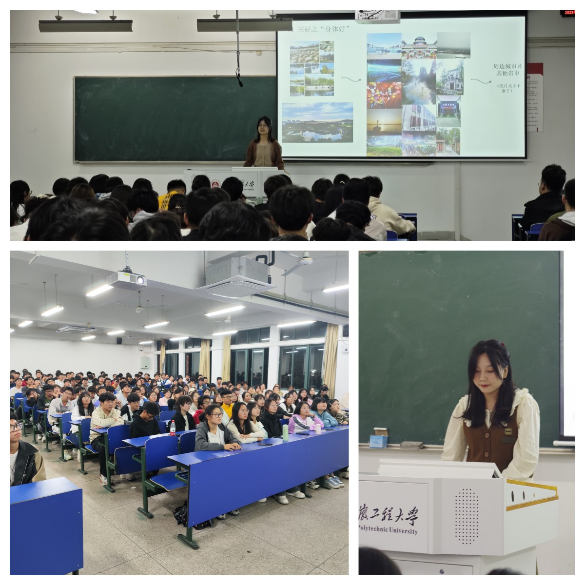数据科学212江蒙、软件222郝明鑫、物联网211丁一丹、数据科学221汪天一、数据科学212孙玮从德智体美劳五个方面展开介绍,大家谈到要把学习与兴趣爱好相结合,做到统筹兼顾,要积极参与团队竞赛活动和课外活动,培养团队协作能力。在面对困难的时候要积极应对,有主见的去做出正确的选择,让自己变得更优秀。德育之星江蒙围绕“如何当好一名团支书”,着重从班级建设、活动开展等方面向大家分享自己的工作心得。学习之星郝明鑫表示,要针对学科的特点制订合适的学习方法,养成良好的学习习惯。体育之星丁一丹以自我提升以及未来规划等方面为同学们提出建议,她说,要保持认真严谨的生活态度,积极利用大学平台优势,对优势技能进行锻炼,提升综合素质。美育之星汪天一告诉大家,要提高自身能力是有所作为的基础,通过积极参加文艺活动来提升组织活动能力和人际交往能力,劳育之星孙玮表示只要以勤恳踏实的态度去对待学业,投身志愿服务,自然会感到大学生活之有趣。
