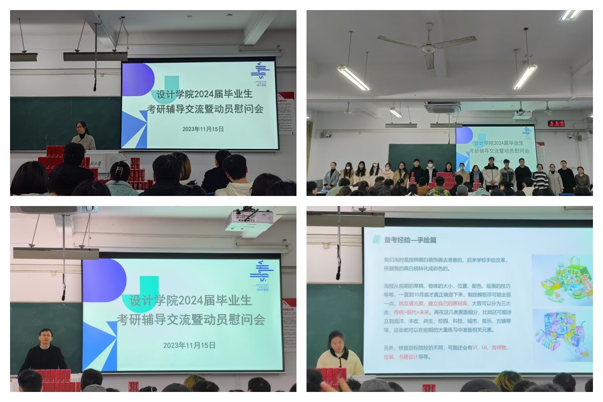 砥砺奋发,聚力前行,坚定考研学子的信心,舒缓考研压力,11月15日下午,设计学院召开考研辅导交流暨动员慰问会,学院党委副书记彭海燕、专业教师陈党、毕业班辅导员及2024届考研毕业生出席活动。