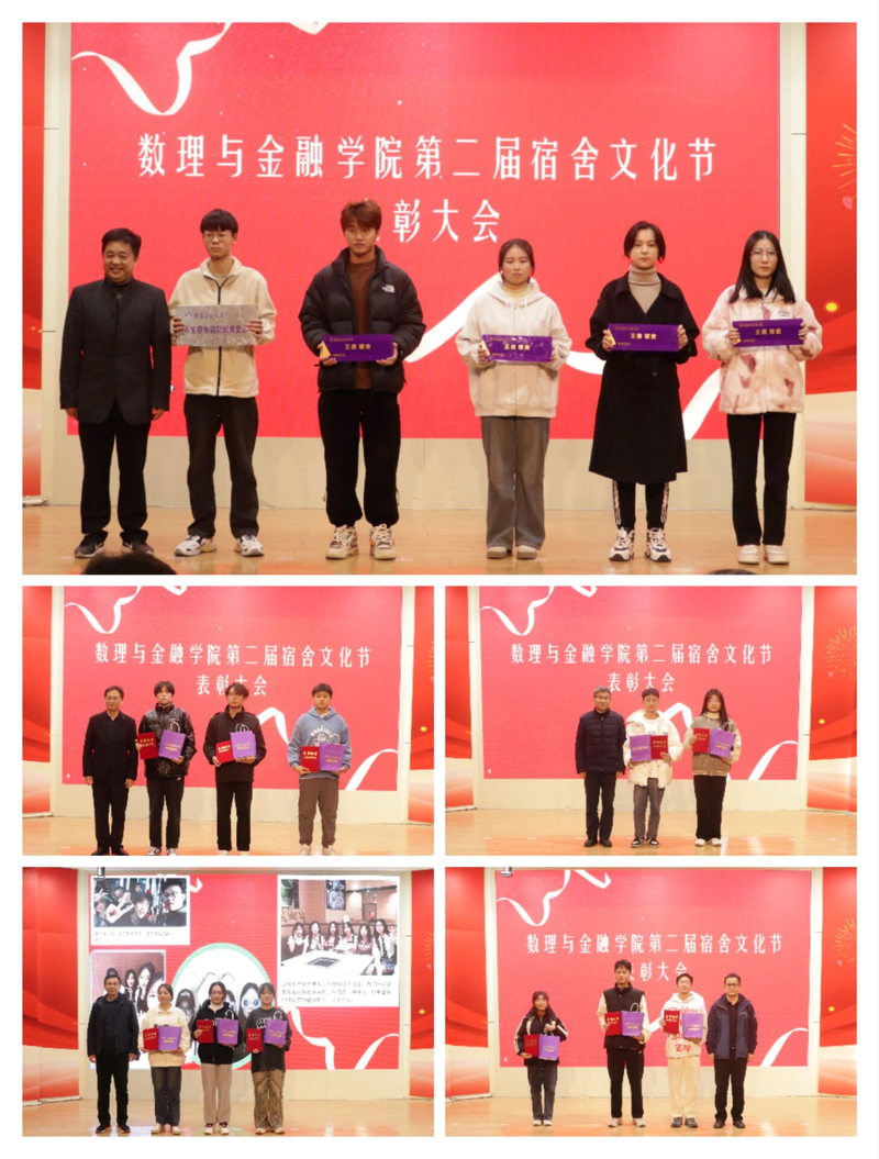 为进一步表彰先进、树立典型,激励广大同学主动参与宿舍创建,数理与金融学院于11月16日晚在学术报告厅举办第二届宿舍文化节表彰会,学院各年级班长、团支书、宿舍、学生代表参加。校后勤保障处党总支书记张开炳,国际工程师学院和谐学生社区党委书记、学生处副处长郭全根,保卫处副处长江海,校团委副书记周海林,学院院长吴小太、党委副书记何志恒出席。