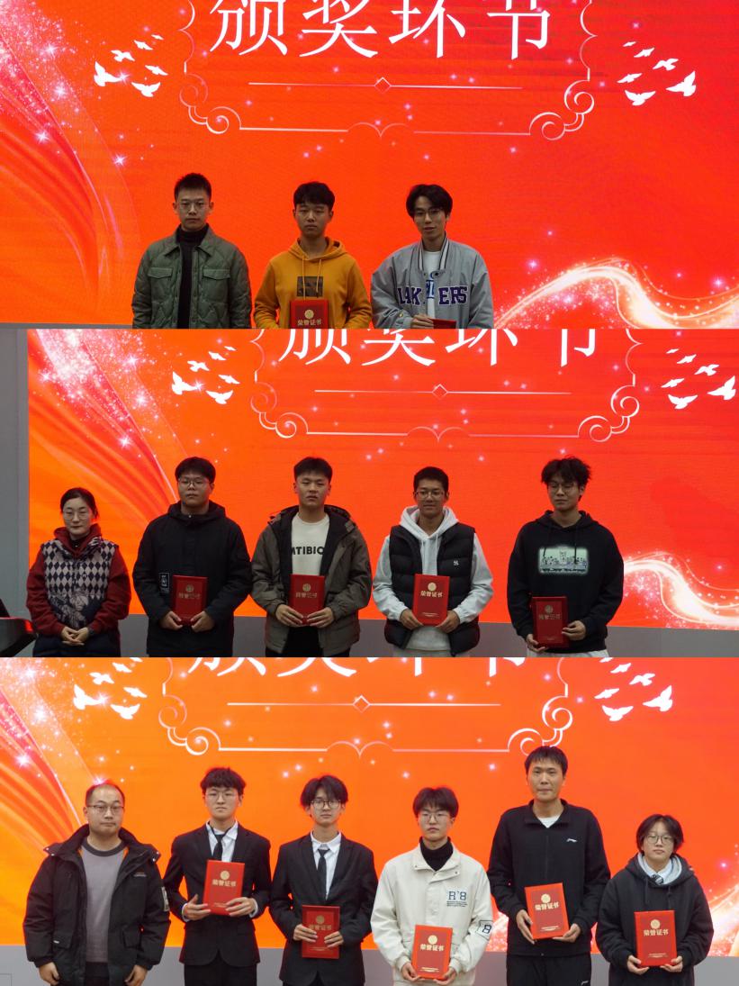 经过激烈角逐,车辆233王志宇、车辆234罗亮荣获一等奖;测控231何海宇、车辆231于子焱、机制235李想、新能源231谢琪珉荣获二等奖;测控232张毅、测控231孔维东、机制238胡太胜、机制237甄天赐、机电231杨旭荣获三等奖。结果公布后,评委为获奖选手逐一颁奖并合影留念。