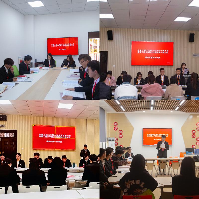 11月19日,安徽工程大学第六次学生代表大会、第三次研究生代表大会在师生活动中心召开。校党委副书记苏国红,校党委常委、副校长郑健、凤权,团芜湖市委副书记贾冕茜,省学联驻会执行主席徐迎归,相关职能部门负责人以及各学院团委负责老师出席开幕式。来自全校的194名学代会代表和71名研代会代表肩负2万余名本科生、研究生的期望和重托,认真履职参会。
