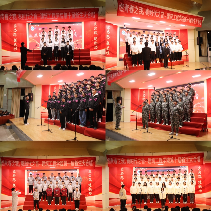 学院2023级6个新生班级参加本次比赛。比赛现场,同学们以饱满的精神面貌、高涨的热情、深情的歌声,抒时代豪情。土木231班同学身姿挺拔、意气风发,为我们演唱 《我的中国心》表达对祖国不解的情怀,深藏着一颗依恋之心,叫中国心;土木232班一曲《歌唱祖国》表达了对祖国深深的爱恋,展现百年风雨洗礼,始终不忘初心,牢记使命,坚定不移跟党走;建筑231班同学带来的合唱《团结就是力量》歌唱祖国歌唱党,力量无穷震天扬,这力量承载风帆必胜的希望;工程231班同学合唱《少年中国说》表达了少年要有理想、有信念、有担当,勇敢面对挑战,不怕困难,不畏艰险的豪情万丈;土木233班同学们倾情演唱《龙的传人》讲述了国人奋发图强,江河岸,巨龙醒的历史时刻。给排水231班带来歌曲《强军战歌》表达新时代有志青年应积极投身国防建设,开启军旅生涯的壮美诗篇。