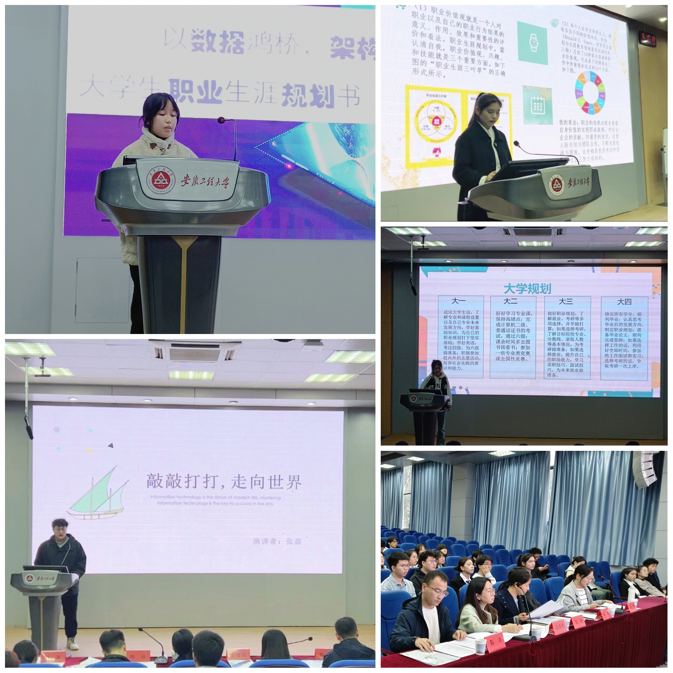 为帮助新生更好地规划大学生涯,深刻了解自己,树立大学目标,引导广大学生树立正确的成才观、择业观和就业观,11月22日,计算机与信息学院在5J117教室举办了2023年大学生涯规划设计大赛决赛,本次活动也是学院大学生涯规划系列活动的收官之作。学院2023级大学生涯规划系列活动通过主题班会、“学长学姐面对面”、创业校友分享会、离退休党员荚新民老师报告会等专题讲座、生涯规划设计大赛等方式开展。决赛现场邀请了学生处学生管理科刘畅、材料科学与工程学院陶冶、教务处学籍管理科彭安琪、院团委吕寅、陈涛担任决赛评委。经过现场评审,最终评出一等奖2人,二等奖5人,三等奖5人。