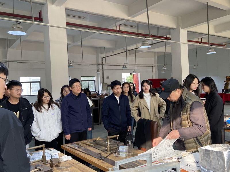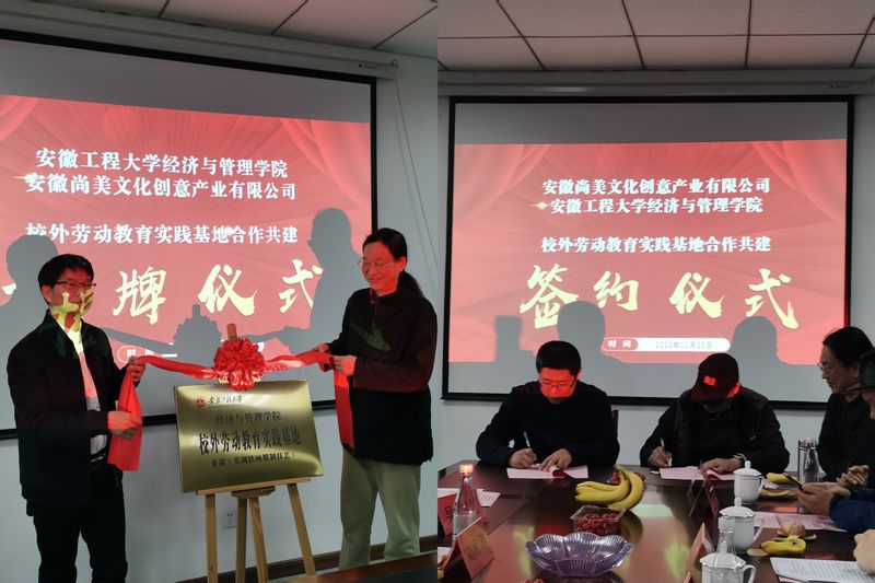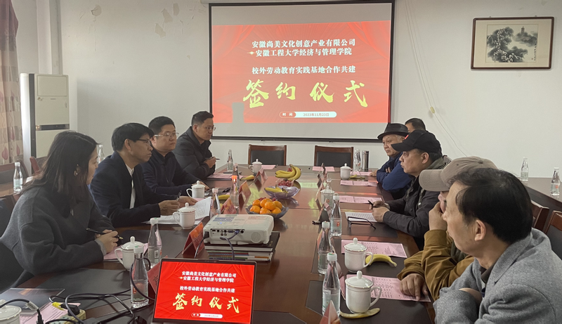 劳动创造幸福,实践淬炼成长。11月23日,经济与管理学院师生赴中国铁画创意园与安徽尚美文化创意产业有限公司签订校外劳动教育实践基地(非遗·芜湖铁画锻制技艺)。安徽尚美文化创意产业有限公司总经理高文清,安徽省工艺美术大师、省级非遗传承人叶合,省级非遗工坊负责人韦虹,芜湖市工艺美术协会执行会长王文,芜湖市皖江地名文化研究中心秘书长金卫东,经济与管理学院党委书记水心宝、副书记刘海涛、团委书记、教师代表、学院青马班学员、研究生党员、学生代表等30余人共同参加此次活动。