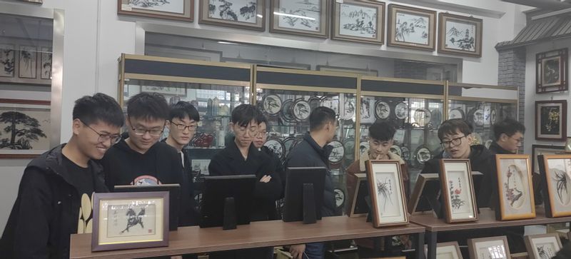 签订协议前,在公司负责人的带领下,全体师生共同参观了“走进铁画”作品展厅。