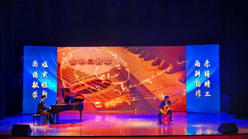 花腰柔婉,意蕴绵绵,舞蹈《五毒》、《傣灵》模仿了孔雀的灵动与婀娜,展现独特的民族风情;器乐演奏《葡萄熟了》给大家带来了动听的民族音乐和独具风情的特色舞蹈,让人置身于新疆人民庆祝丰收、载歌载舞的场景;相声《如此上进》将中华传统艺术形式与现代大学生生活紧密结合,令同学们忍俊不禁、开怀大笑;《古典二重奏》运用钢琴与吉他的完美合奏,委婉细腻、清越悠扬,向我们展现了古典乐器的独特魅力。