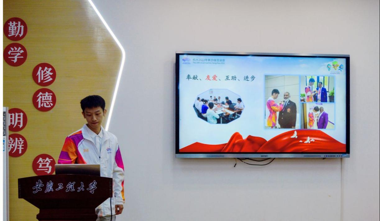 终审答辩采取“汇报展示+现场答辩”的形式进行。20位优秀青年志愿者围绕个人介绍、志愿活动经历、未来期望等方面展开汇报,阐述了自己对志愿者的理解,述说了自己从投身志愿活动到热爱志愿活动的心路历程。数理与金融学院阮友慧同学将团队撰写的《红色传家宝》故事绘本带到现场,着重汇报了她参与红色故事收集、采访、整理的过程;体育学院研究生杨禹靖同学重点叙述了他与亚运会背后的故事,讲述了他作为卡巴迪项目联系人向国际技术官员传播中国精神的经历,带我们更深入地感受到志愿者的责任与意义。
