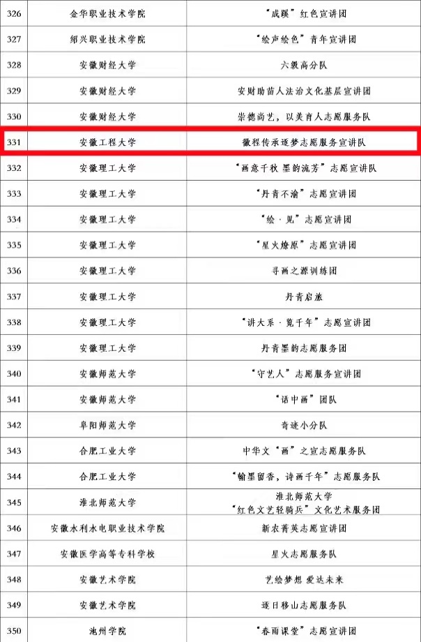 为深入贯彻落实习近平文化思想,推动中华优秀传统文化的传承发展和国际交流,团中央青年志愿者行动指导中心、教育部中外语言交流合作中心、中国外文局文化传播中心、浙江大学、中国文物报联合发布了《关于遴选2023年“中国历代绘画大系”全国大学生志愿宣讲团的公告》。活动得到了各高校志愿服务团队的广泛关注和积极参与,主办单位对所有材料进行了认真审阅,最终共有来自全国379所高校的1000支大学生志愿服务团队入选。其中,安徽工程大学人文学院“徽程传承逐梦志愿服务宣讲队”入选2023年“中国历代绘画大系”全国大学生志愿宣讲团,该团队也是我校唯一一支入选团队。