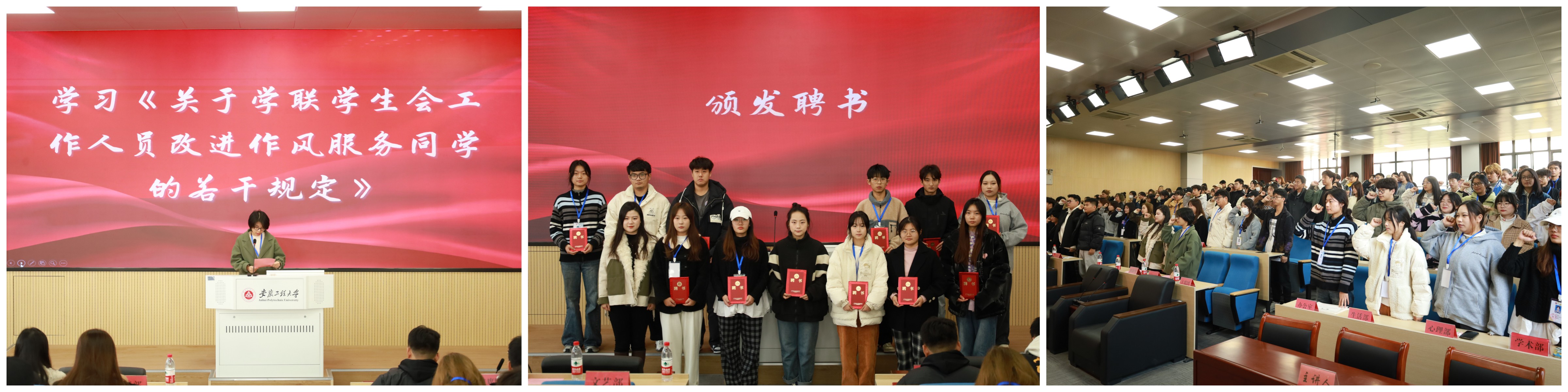 会上,院团委学生副书记闫梦雅带领全体成员学习《关于学联学生会工作人员改进作风服务同学的若干规定》,开展学生干部廉洁作风建设警示教育。余润佳宣读本届团委学生会干部名单,田潇濛颁发聘书,并合影留念。最后,全体学生干部进行宣誓,奏唱共青团团歌。