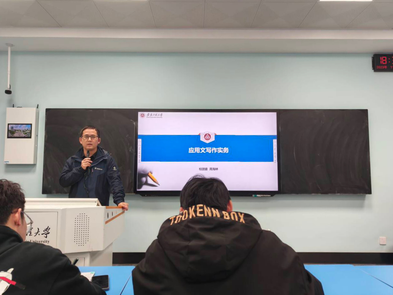 校团委副书记周海林以“如何做好班团新闻宣传工作”为主题,深入浅出地讲解了新闻宣传的重要性和应用文写作的技巧。他强调,新闻宣传工作是班级、团组织工作的重要组成部分,只有做好这项工作,才能让更多的人了解我们的工作和活动,才能更好地发挥我们的影响力。同时,他还详细介绍了应用文写作的基本原则和技巧,以及具体教授大学阶段常用的一般性、公文性和事务性应用文的写作,对提升学生的写作能力具有极大的帮助。