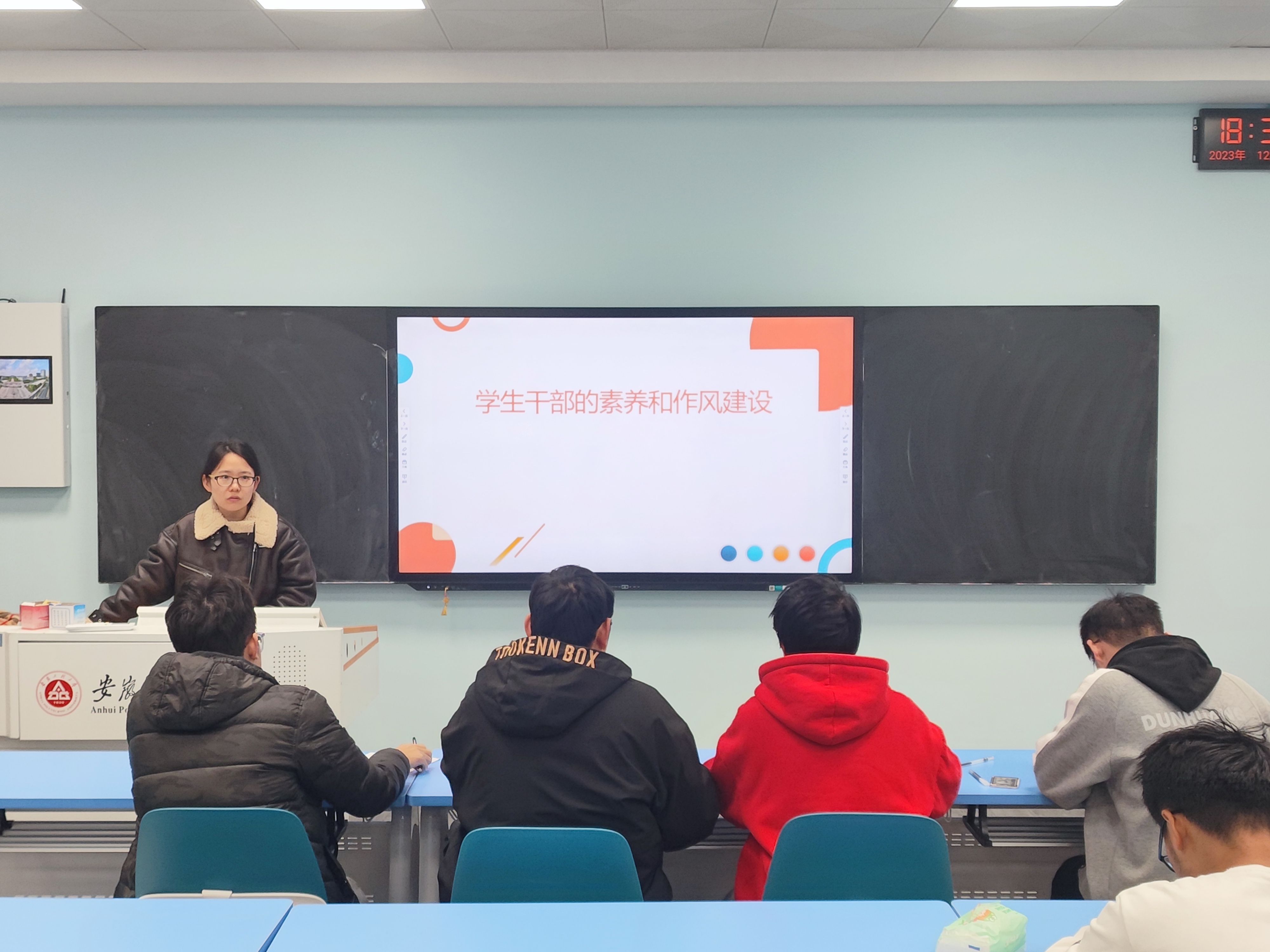 校团委宣传科科长孙琳瑶老师为学生干部讲授了素养和作风建设。她指出,作为学生干部,不仅要有良好的学习成绩,而且政治素质和作风建设过硬,尤其强调学生干部要具有良好的沟通能力、文字写作能力和极高的工作效率。她鼓励学生干部要勇于担当,积极服务同学,做到学以致用,以实际行动践行马克思主义精神。
