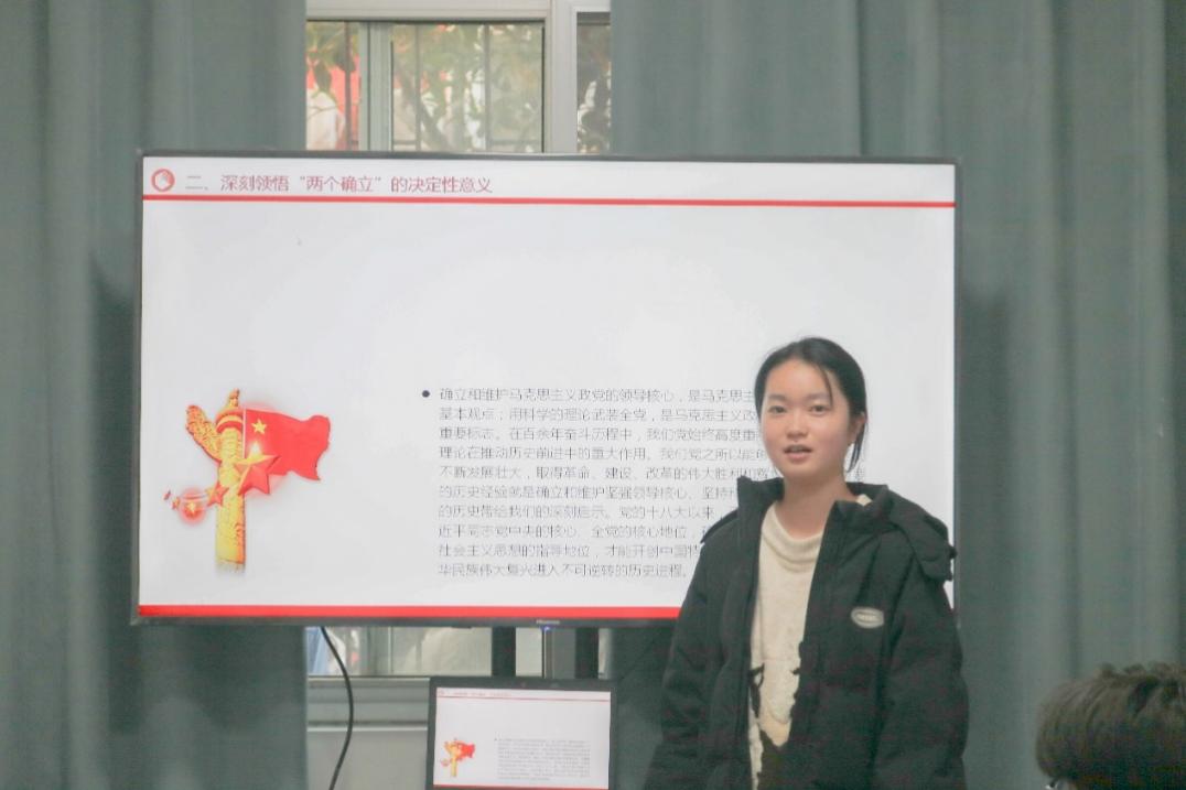 本次理论学习活动以“坚强核心”为主题,分为自学、领学、交流研讨、教师点评四个流程。首先,全体人员就《习近平新时代中国特色社会主义思想专题摘编》《论党的青年工作》《习近平著作选读》等著作中“坚强核心”主题篇目进行了自学。接着,学生会文体部部长法学222包宁露从新时代党和国家事业取得的历史性成就、发生的历史性变革出发,带领团员青年深入学习了“两个确立”的决定性意义,并从增强“四个意识”、坚定“四个自信”、做到“两个维护”等方面作了详细阐述。最后,全体人员围绕理论学习内容进行交流研讨。学生会文体部委员行管231朱倩文表示,作为新时代的青年大学生,我们要把自己的理想同祖国的前途、把自己的人生同民族的命运紧密联系在一起,加强理论学习、提高政治思想水平,增强专业学习、提升综合能力,践行服务工作、提升实践能力,发挥学生骨干示范引领作用。学生会办公室委员行管231郑宗泽表示,团员青年要学会运用习近平新时代中国特色社会主义思想的立场观点方法分析问题,严格要求自己,以身作则、做好表率,扎实学习专业知识,积极投身火热实践,做有理想、敢担当、能吃苦、肯奋斗的新时代好青年。