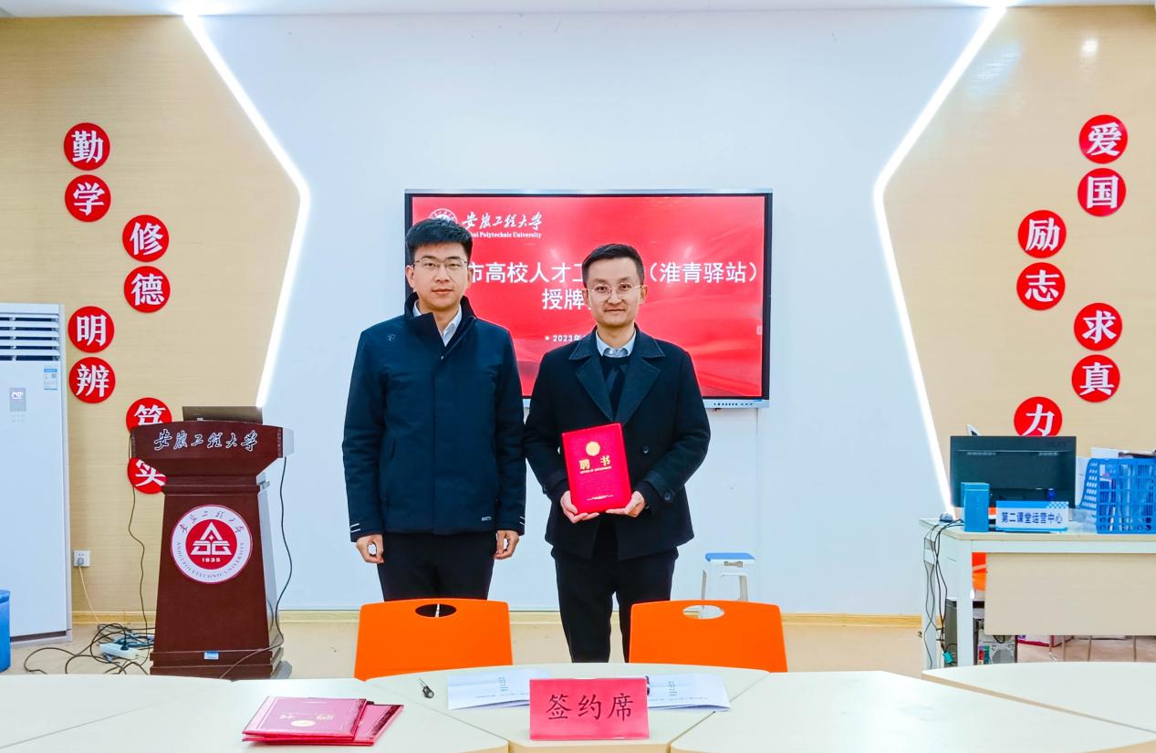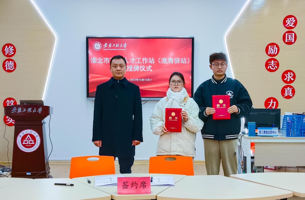 在与会人员的共同见证下,校团委与淮北团市委签订了“淮青驿站”共建战略合作协议,为工作站顾问、站长和副站长颁发了聘书,并为工作站启用授牌。