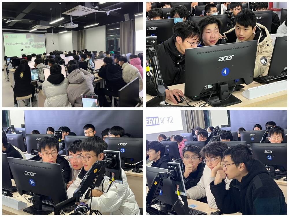 本次比赛分为初赛和决赛两个阶段。为培养学生团队协作能力,初赛由各学院选派三人,组成一队,于12月15日在C座601机房进行线上做题,排名前12名的队伍进入决赛。