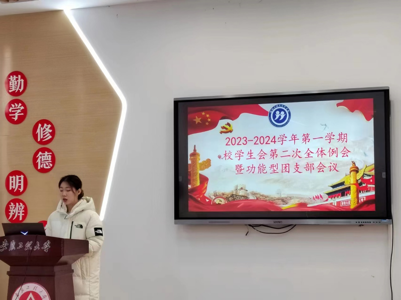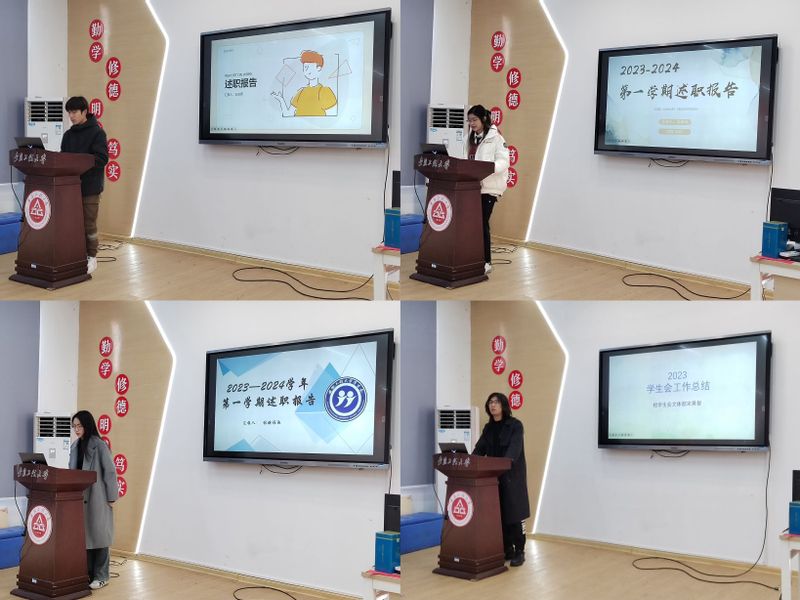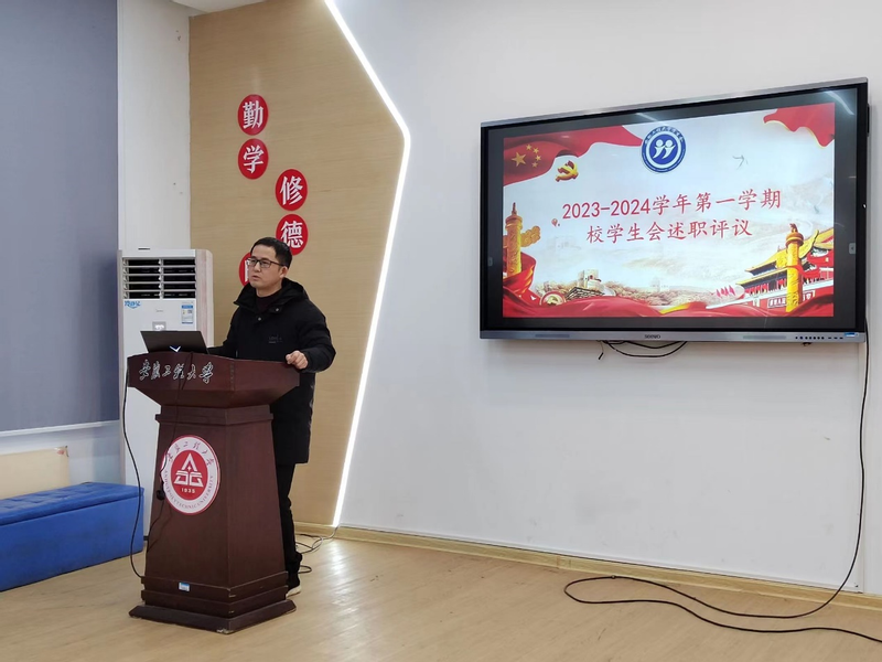 12月27日下午,校学生会在一站式服务社区第二课堂运营中心召开2023-2024学年第一学期述职评议会。校团委副书记周海林、学生处秘书赵静云、校团委组织宣传科科长孙琳瑶、学生代表汪炜桀、周宇航、梅姿萱担任评委,校学生会全体成员参加会议。