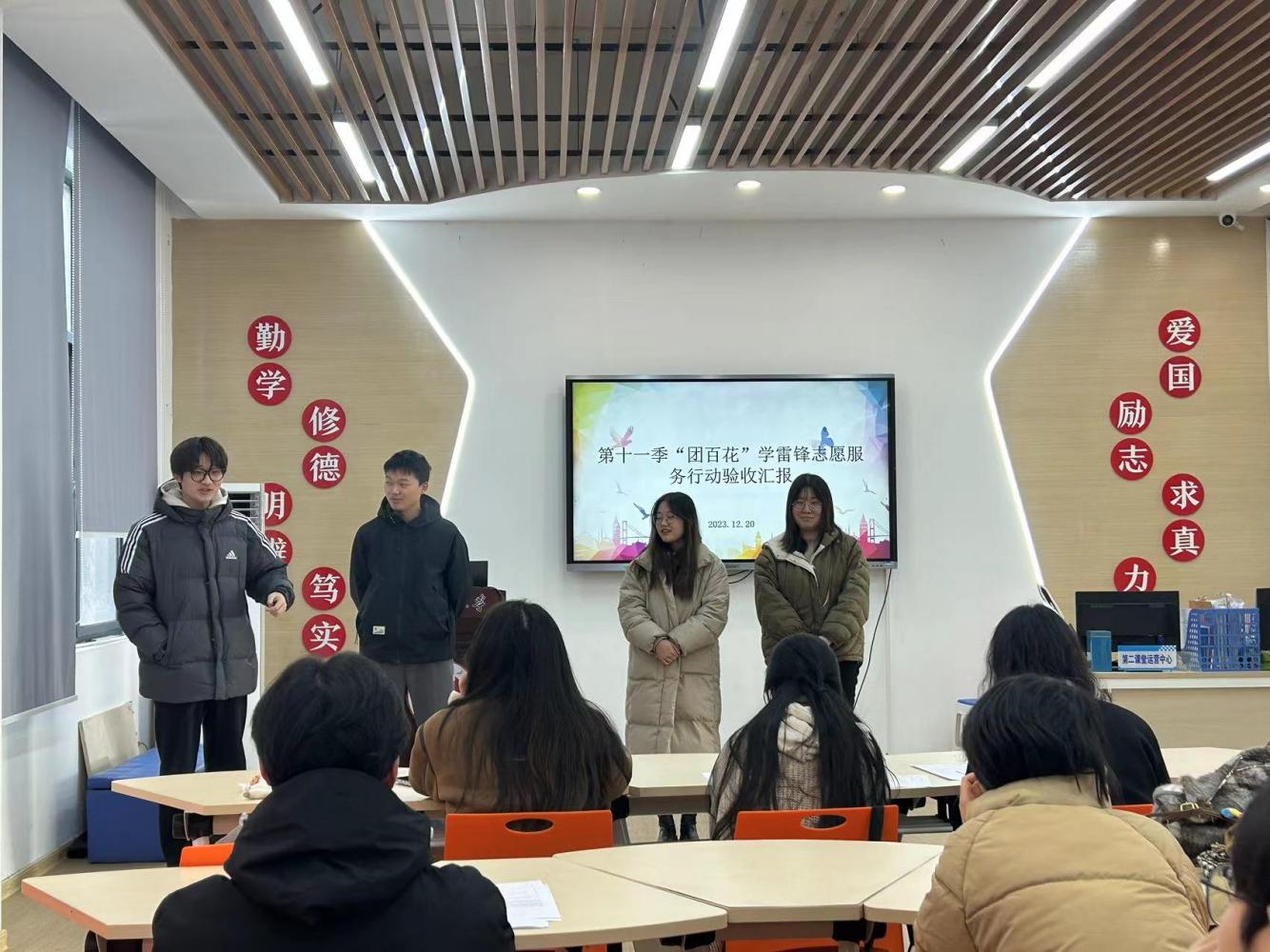 为进一步传承和弘扬雷锋精神,推动我校学雷锋志愿服务活动制度化、常态化、长效化,12月29日下午,我校第十一季“团百花”学雷锋志愿服务行动项目验收汇报活动在一站式学生社区第二课堂分组举行,40个金、银奖项目和重点项目团队负责人依次汇报。2023年十佳青年志愿者担任评委。