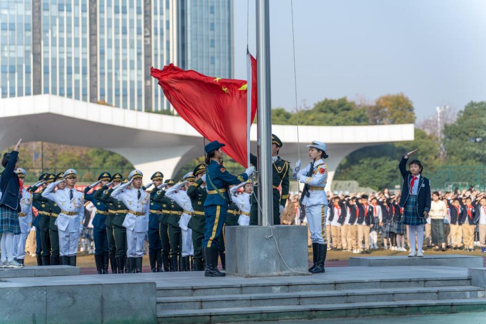 青春的热血如同澎湃的大河,无尽的力量在此刻汇聚,成就了无数辉煌的瞬间。2023年,国旗护卫队在清明节参加学校组织的祭英烈爱国主义教育活动;积极开展中江小学“小小升旗手”志愿升旗活动,向少先队员介绍国旗护卫队基本概况,教授队列动作和升降旗的基本动作要领,激发青少年的爱国主义情怀;举行学校88周年校庆、红色国防运动会、体测运动会、第四十一届运动会开幕式等活动的升旗仪式,参与五四表彰大会、迎新文艺晚会、新生才艺大赛等活动的执勤工作,为2023级新生顺利入校保驾护航,让莘莘学子感受到国旗护卫队的温暖;举办国旗护卫队队列展示和进行军训汇演,举行“国旗护卫队荣誉交接仪式”等。国旗护卫队的成员们,以最真挚的热情,最坚毅的决心,挺立在国旗下,守护着荣耀的旗帜。