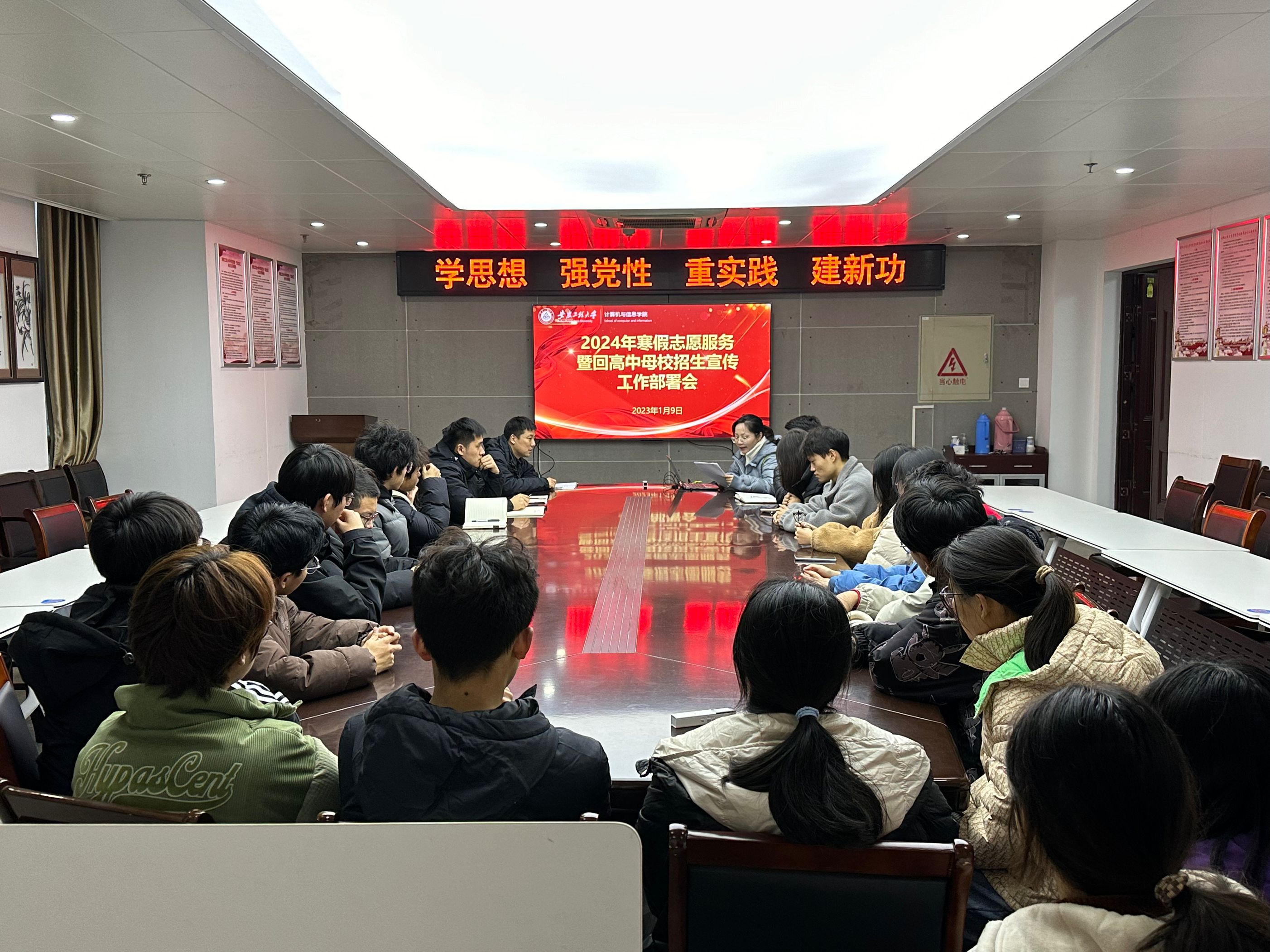 为进一步提高学校美誉度,吸引优秀学生,将“一样的分数,不一样的教育”理念宣传到位,1月9日下午,计算机与信息学院在C座622会议室开展“2024年寒假回高中母校招生宣传暨假日思政主题教育活动”动员部署会。物联网工程系主任章平、数字素养中心主任汪婧、院团委书记吕寅、新生辅导员和宣传团队全体学生志愿者参加。