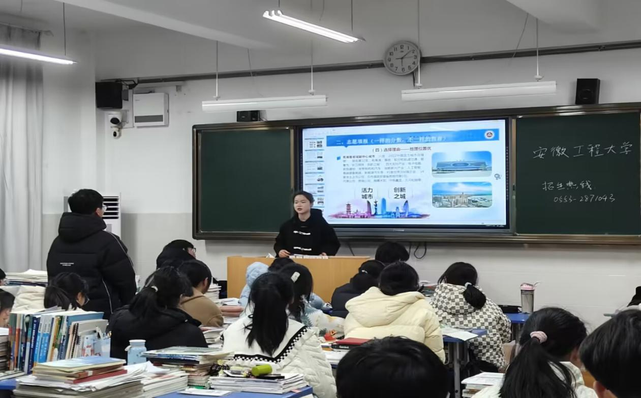 随后,团队成员走入班级、走上讲台、走进学弟学妹中间,分享大学经历、讲述成长故事、宣传大学精神、传播校园品牌,并向学弟学妹介绍了我校情况。针对学生关切的高考备考问题,团队成员结合亲身经历,分享高考备考学习方法、压力应对方法来缓解学弟学妹们紧张心理,以个人在大学生活和学习中的成长变化,鼓励大家以昂仰斗志、饱满精神全身心投入复习备考当中,让学生对美好大学生活产生向往。最后,学弟学妹们积极提问,志愿者们也一一作答,提供查询网址等信息,并留下联系方式便于后期交流。