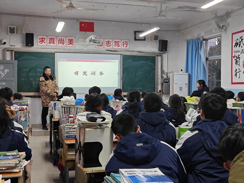 团队一行来到的是歙县第二中学的高三(11)班,受到高中学生的热情欢迎,项梦辉先向同学们分享了如何缓解压力、怎样利用寒假进行复习冲刺,让同学们紧张的心情得到了舒缓。接着,他结合自身情况分享大学经历、讲述成长故事、宣传大学精神、传播校园品牌,随着一张张照片、幻灯片的放映,高中生们对安徽工程大学产生了浓厚的兴趣。宣讲期间,团队组织了有奖问答,同学们积极参与,气氛热烈。