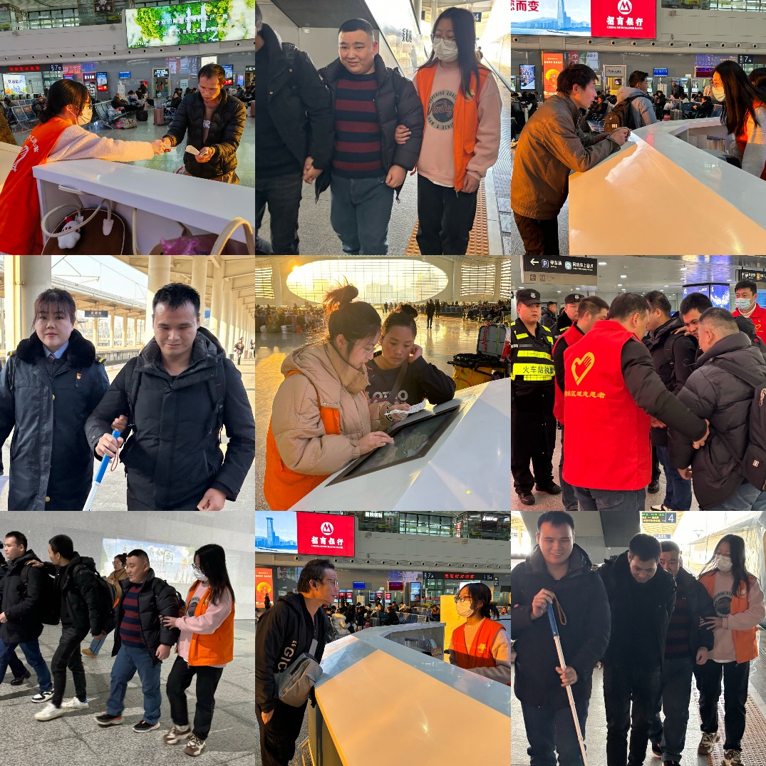 为做好盲校学生返(离)芜出行帮扶,芜湖站联合暖途青年志愿者服务社开展帮助特需旅客爱心行动。1月10日、11日、18日、22日,志愿者们与火车站工作人员相互配合,一句问候、一杯温水、一把搀扶,竭力为盲校学生提供更加优质、周到的服务,温暖特需乘客的出行路。志愿者们认真、耐心地服务,获得了盲校学生的感谢和好评,也得到了火车站工作人员的大力赞扬。