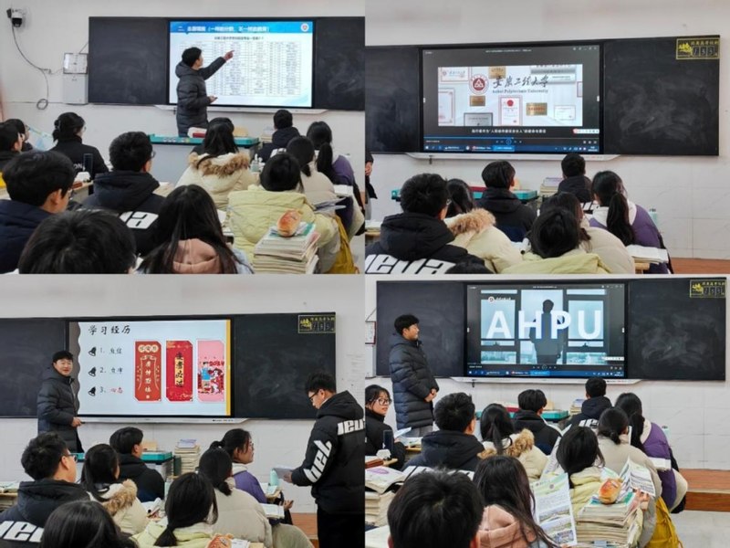材控232班江怀林团队来到山东省郓城县双成双语实验学校进行宣传。在母校的组织安排下,江怀林首先讲述了高三时期可能遇到的学习问题和缓解方法,希望高三学子能拥有一个良好的心态面对高考。随后,团队成员结合自身经历分享大学丰富多彩且充实的生活,宣传大学精神,传播校园品牌。宣讲期间,高三学子们对安徽工程大学产生了浓厚的兴趣。