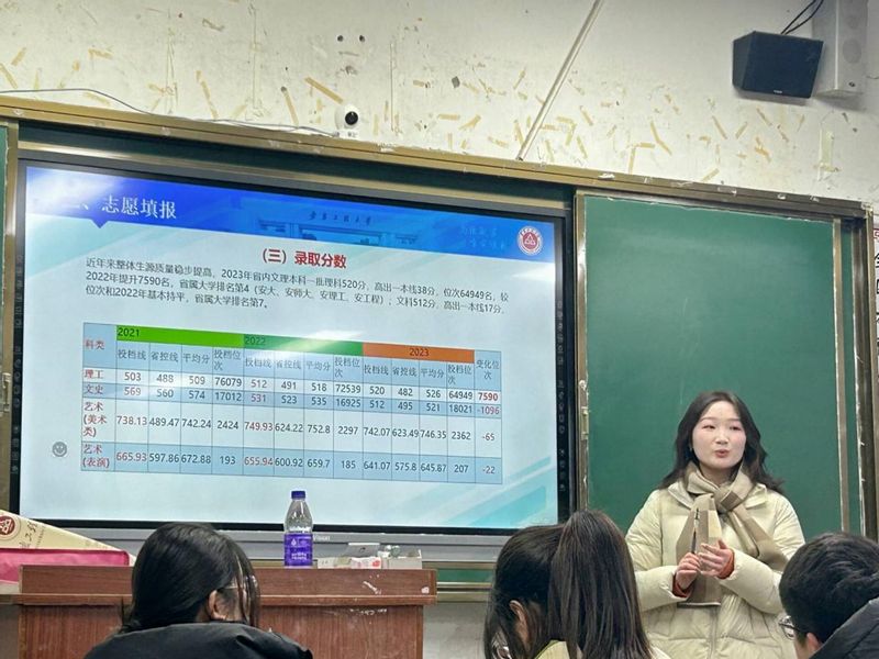 为确保活动的顺利开展,学院精心组织、培训相关志愿者团队,遵循就近就便原则,提前与相关中学对接联系,准备好宣讲PPT及招生宣传单等材料,进入学校内与高二、高三学弟学妹进行宣讲。国贸233班李娜向同学们介绍了安徽工程大学的校史校情、学院设置、专业特色与历年录取分数,并以自己的学习经历、社团活动与比赛经验为例,为学弟学妹们描绘一幅生动的大学生活画卷,告诉他们,大学不仅是学习专业知识的地方,更是一个锻炼能力、拓展视野、结交朋友的平台。