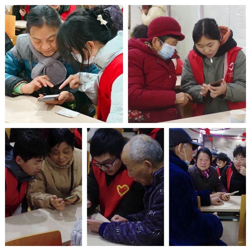 活动过程中,社区参与者热情高涨,纷纷希望能够尽快掌握这些技能,与亲朋好友更好地沟通。教学结束后,志愿者们一对一为老人们答疑解惑,确保他们能够真正掌握所学内容。老人们忍不住对志愿者们频频夸赞,学生细致耐心地讲解,让他们能够掌握一些技巧追赶潮流,同时也让他们感受到了社会的关爱和温暖。
