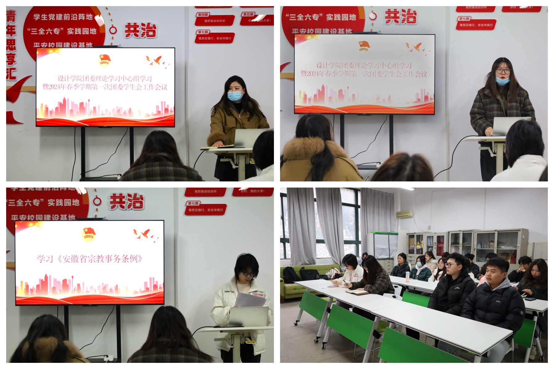 紧接着,院团委学生副书记闫梦雅领学《关于加强新形势下发展团员和团员教育管理工作的实施办法》《安徽省宗教事务条例》等文件精神,强化团员意识。会上,院团委、学生会各部门负责人对上学期的工作进行总结汇报,反思工作中存在的不足,对本部门这学期即将开展的工作进行规划。