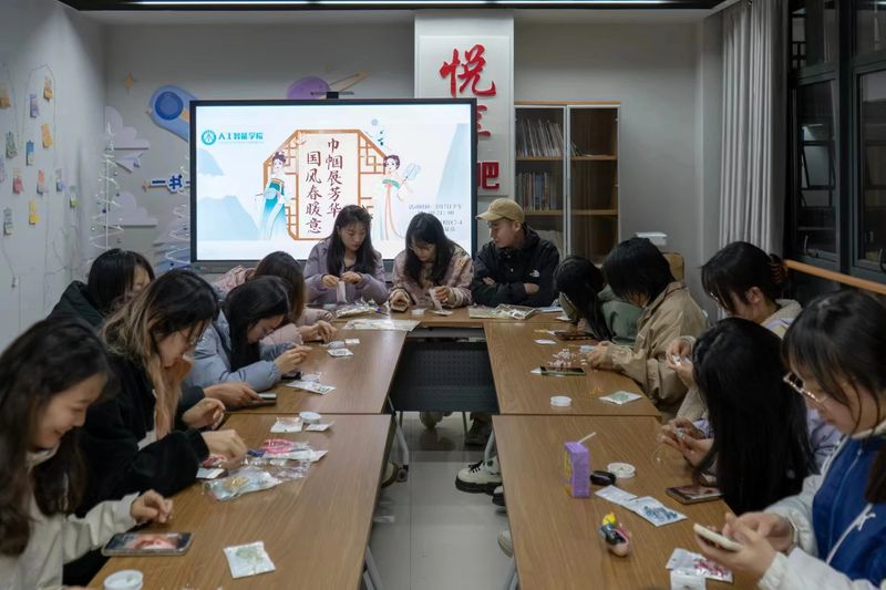 人工智能学院依托“清风微语”工作室、“智汇能量站”活动室打造了乐玩徽程、手工制作等系列社区文化活动,有效地丰富了师生的文化生活、推动了师生间的互动交流。
