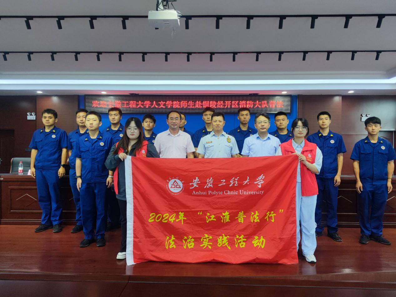 为深入贯彻党的二十届三中全会精神,贯彻落实习近平法治思想和习近平总书记关于青年工作的重要论述,动员广大学生投身基层法治实践,7月26日,人文学院师生一行赴铜陵市经济开发区消防大队开展“江淮普法行”暑期法治实践活动。