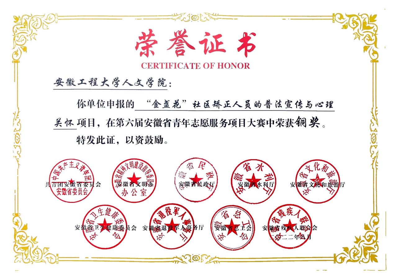 人文学院始终坚持党建带团建,将政治引领摆在首位,教育引导青年学生自觉做习近平新时代中国特色社会主义思想的坚定信仰者、积极传播者、忠实践行者。为进一步提升社区服务质量和效果,激发学生党支部、团支部与社区结对开展实践活动的强大活力,学院结合青年学生的学科与专业优势,着力打造挂靠社团“暖途”青年志愿者服务社、“阳光之旅”青年志愿者服务队两支志愿服务“生力军”,精心培育“团百花”志愿团队,注重发挥特色典型项目的示范带动作用,实现志愿服务活动“以点带面”蓬勃发展。截至目前,已组织志愿者400余人次在芜湖市30余个社区累计开展活动近60场,服务时长达200小时,服务人数达千余人。其中,“金盏花”社区矫正人员的普法宣传与心理关怀项目曾获得第六届安徽省青年志愿服务项目大赛铜奖。