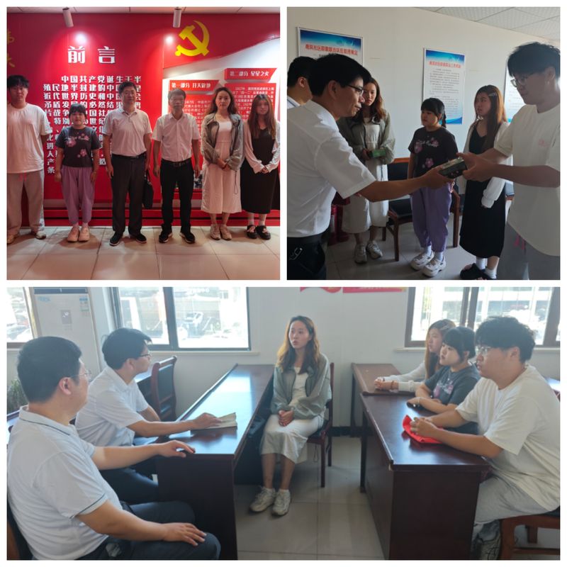 会上,水心宝赞扬同学们不惧酷暑炎热,克服困难,奉献青春力量。并带领同学们学习了《习近平与大学生朋友们》一书中“习近平同志提倡年轻人要‘自找苦吃’”相关文章节选,指出青年人要不怕吃苦,把艰苦环境、艰巨任务当作磨炼自己的机遇,在实践过程中注意理论联系实际,将书本上的知识与现实的情况有机结合,在奋斗中不断提升自己。同时,他勉励同学们在以后的人生路上要时刻提醒自己,坚持多学多干,多到艰苦的地方去锻炼自己,努力成长为有理想、敢担当、能吃苦、肯奋斗的新时代好青年。刘海涛鼓励同学们在实践项目训练中寻求收获,在困难磨炼中收获成长,在青春奉献中得到升华。队长人力221班吴崇越同学代表实践团队向水心宝一行汇报了支教工作的开展情况,分享了队员们日常开展教学活动、支教帮扶、社会调研等方面的经历,团队成员向学院领导及老师的关心关爱表示感谢。座谈结束后,在社区工作人员的带领下,全体人员一同参观了社区的党史教育长廊。
