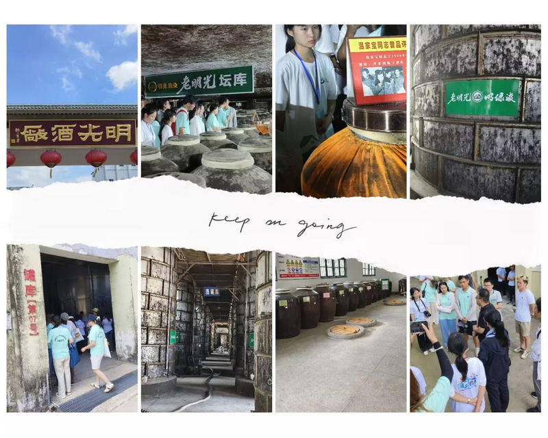“欲问美酒何处香,且随先锋队入明光。”先锋队的首站是历史悠久、酒香四溢的明光酒厂。未进酒厂,先闻其香,那浓郁醇厚的酒香仿佛是岁月的低语,诉说着千年酒文化的传承与创新。队员们踏入酒厂,犹如走进了一座酒文化的殿堂。古老的酿造工艺与现代的生产设备交相辉映,正如“沉舟侧畔千帆过,病树前头万木春”,传统与现代在此完美融合。大家仔细聆听着工作人员的讲解,目睹了粮食如何在时间与技艺的魔法中化为一坛坛美酒,深深感受到了工匠精神的魅力。