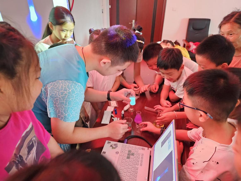为推动“普惠乡村”事业发展,衔动乡村科教文化需求。8月中旬,化学与环境工程学院“启智未来队”赴黄山市阳湖镇稽灵山社区开展“科学漫步”暑期“三下乡”公益科普社会实践活动。实践团队由化学与环境工程学院应用化学(拔尖)专业学子组建。团队成员运用所学专业知识特长,通过趣味科普活动,破解日常科学迷思,启蒙在地童萌科创意识,以“实践”之笔,充分展现青年学子的责任与担当。8月12日,项目指导教师马晨对活动开展做调研指导。