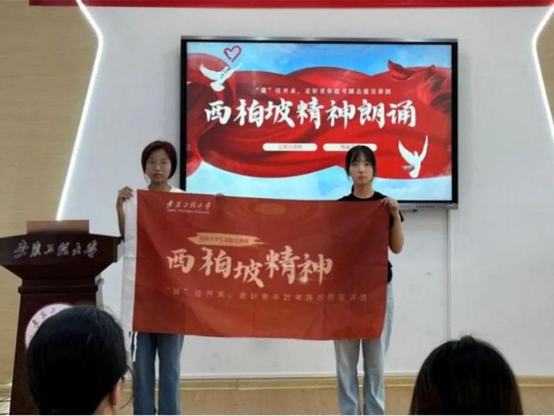 历史铸柏坡,精神耀中华。为切实增强青少年中华文化传承意识,进一步传承弘扬西柏坡红色精神,结合新时代发展需要,“冀”往开来,在这个暑期,“走好青年赶考路宣讲团”在安徽工程大学及周边中小学社区开展了一系列红色西柏坡精神宣讲活动。通过宣传西柏坡精神,激发了同学们的奋斗精神,传承了革命内涵,展示了在新时代下,西柏坡精神的传承与革新,展现了新的中国精神和中国风貌。
