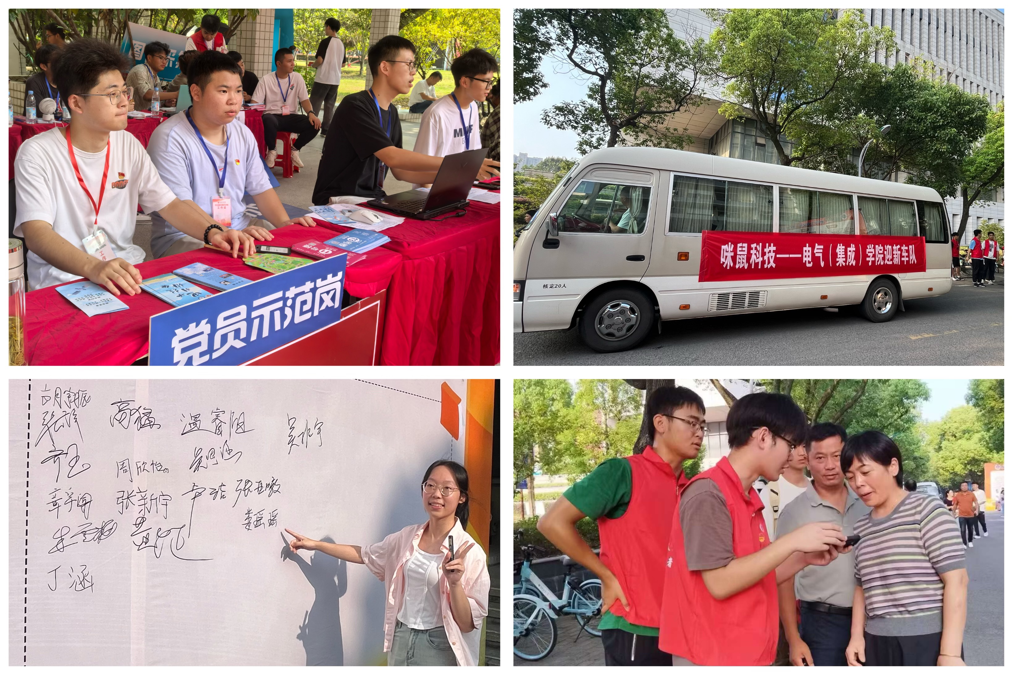 在1号教学楼,报到现场喜气洋洋。学院布置展示了学院简介打卡墙、考研光荣榜等展板,设置了“党员服务岗”,让学生党员以志愿者的身份积极主动开展迎新工作,学院电子科技协会等3个科技社团现场招新,启蒙新生学科竞赛兴趣;同时,学院还联合校友企业,现场安排5辆的爱心车辆帮助托运行李,全程接送,一站式完成报到入住,让新生感受到大学院的温暖。迎新志愿者们围绕新生,耐心地解答他们提出的问题,忙得不亦乐乎。新生纷纷表示,等入学以后自己也会参加此类志愿活动,积极参加社团参加学科竞赛,成为学长学姐这样优秀的人。