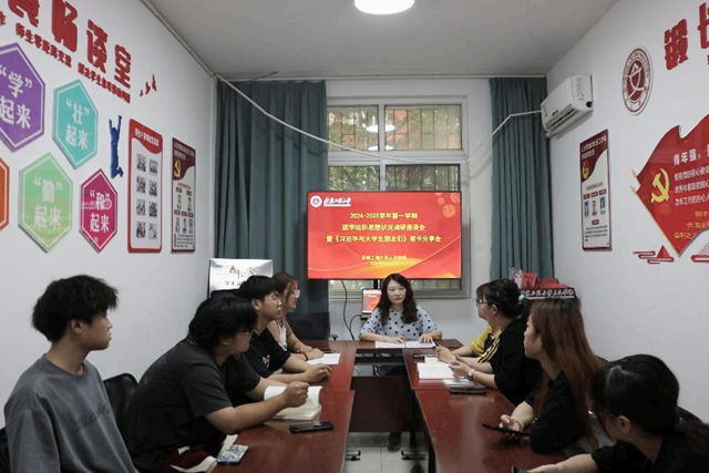 团员青年结合暑假期间的思想动态、学习、生活、“三下乡”社会实践等情况,以及对关注的国内、国际热点问题畅所欲言,并就新学期开展“三全六专”育人实践、团学组织及挂靠社团的工作方向和具体安排等方面进行探讨。随后,利昕云带领全体团学骨干学习了《习近平与大学生朋友们》第一、二卷的相关内容,并分别围绕书中的访谈故事,结合自身经历、学习工作情况分享读书感悟。行管231潘雨萌表示:“《习近平与大学生朋友们》充分反映了习近平总书记对大学生成长成才始终高度重视,当代青年是与新时代同向同行、共同前进的一代,生逢盛世,肩负重任。作为学生团委副书记,要带领团员青年肩负历史使命、坚定前进信心,立大志、明大德、成大才、担大任,努力成为堪当民族复兴重任的时代新人”;学生会主席团成员行管231范乐彩表示:“科学知识使我们认识客观世界及其规律,知道‘怎么做’,人文精神就是引导‘应不应该做’,实现人自身的发展。作为学生会主席团成员,不仅要以身作则做表率,更要以全心全意服务同学为宗旨,提高团队合作能力,笃行不怠、踔厉奋发,践行青年使命”;挂靠社团法律协会会长法学232马星宇表示:“我们要牢记习近平总书记的殷殷嘱托,努力成为‘六有’大学生,既要有远大的理想和追求,又要有担当和作为,同时注重个人品质和修养的提升,志存高远、奋发有为,将青春梦融入中国梦,成为伟大理想的追梦人”。