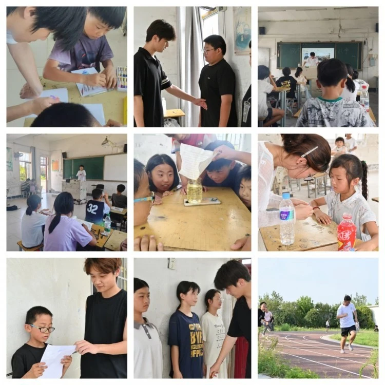 实践团队以行动为墨,留下了一个个鲜活的印记。2025年暑期,“志青春”支教队赴涡阳县王大楼中学,构建“基础学科+特色课程”双轨教学体系。形体课帮助学生解锁优雅姿态;创意美术课引导学生用秸秆、石子创作“乡村春天”,用废旧纸箱制作“会讲故事的房子”;还策划“童心美术展”,展出学生作品,点亮乡村孩子艺术梦想。
