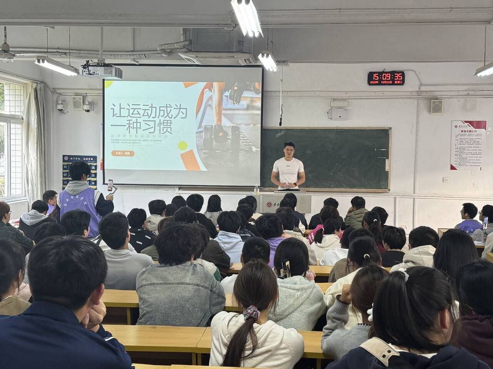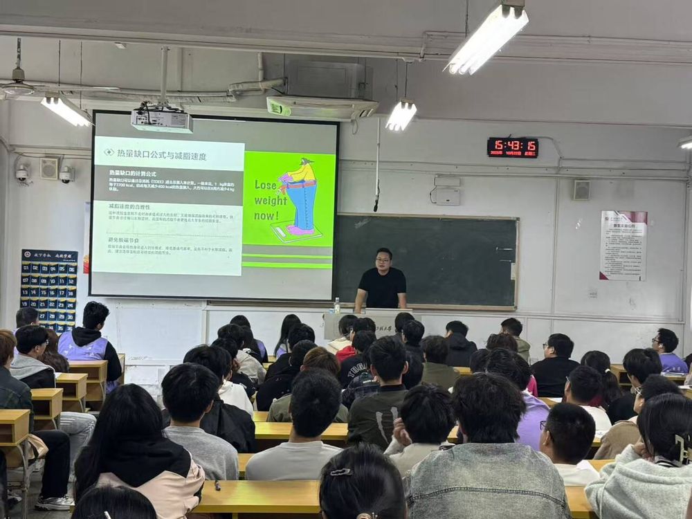 为保障训练科学性,学院特邀国家职业资格高级教练、NSCA认证体能专家盛磊担任健康导师,为学生定制个性化锻炼计划。每周三下午将开设HIIT、核心激活、功能性训练等专业团课,并安排运动防护指导与现场答疑。启动仪式后,盛磊在4J110教室通过数据表格与动作示范,系统讲解BMI、体脂率与运动强度的匹配原则,演示差异化的训练方法。