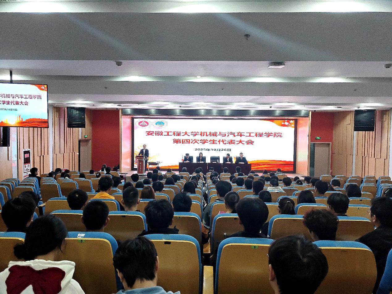 10月26日,机械与汽车工程学院在国际工程师学院校区赤铸报告厅召开第四次学生代表大会。学院党委副书记秦广虎、学院团委书记程雷、校学生会主席朱玥、院学生会主席钱荘荘以及学院学生代表参加大会。