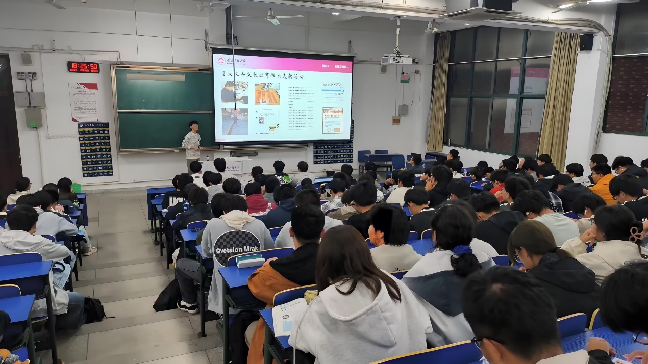 宣讲会上,甄天赐结合自身实际,用平实的语言、生动的故事、真挚的情感,为现场师生呈现了一堂别开生面、催人奋进的青春思政课。甄天赐分享了学科竞赛道路上攻坚克难的毅力,在专业学习中追求卓越的执着,以及在全面发展中平衡学业与志愿服务工作的智慧。他身上所展现的勤奋刻苦、勇于探索的精神,深深感染了在场的每一位听众。甄天赐还动情讲述了投身志愿服务、为同学们服务的经历。从社区服务到环保宣传,从捐资助学到应急救护培训,他用无私的奉献和温暖的行动,诠释了“奉献、友爱、互助、进步”的志愿精神,彰显了新时代青年的社会责任与担当。整场宣讲会气氛热烈,掌声不断。甄天赐的故事鲜活、真实、有力,为在场同学提供了可学可做的身边榜样。