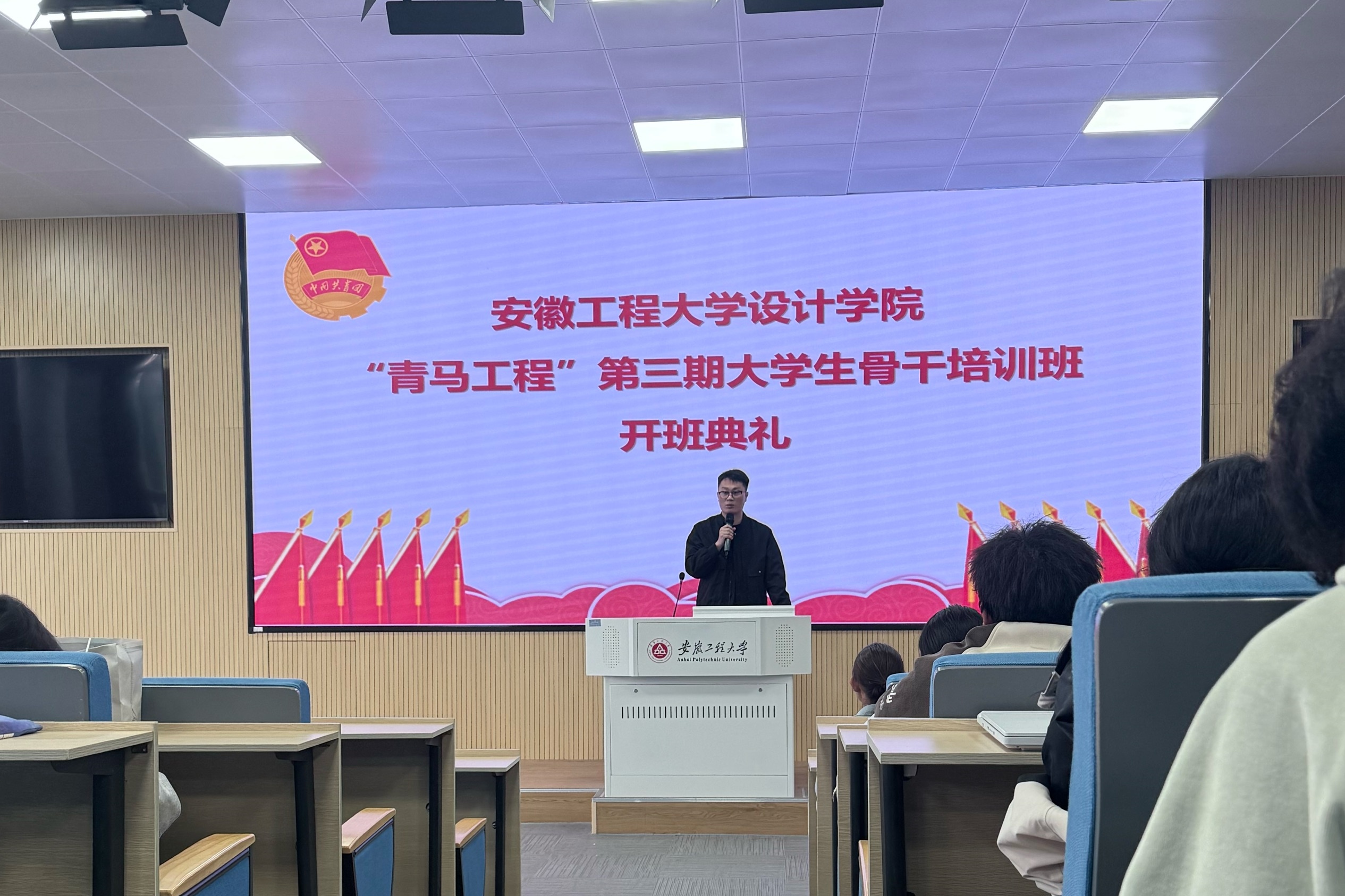 为深入贯彻落实党的二十大精神及党的二十届四中全会精神,扎实推动青年马克思主义者培养工程深入实施,10月31日,设计学院第三期“青马工程”大学生骨干培训班开班仪式在五教217隆重举行。学院党委副书记陶冶、团委书记田潇濛、2025级辅导员吴旭及百余名学员共同参与,仪式由培训班班主任叶杨主持。