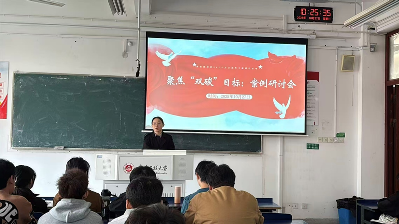 团支部书记付红艳作为主持人开篇点题,阐明本次活动核心目的:通过专业案例剖析,帮助同学们加深对国家“双碳”战略目标的理解:借助研讨交流互动,进一步强化班级向心力与集体凝聚力。