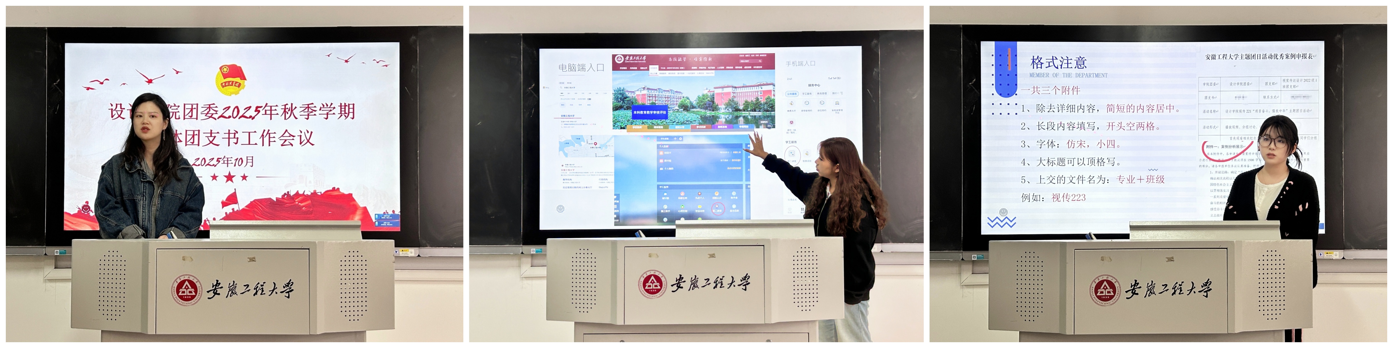 为扎实推进学院基层团支部建设与管理,10月30日,设计学院在8教410教室召开2025年秋季学期全体团支书工作会议。学院团委书记田潇濛以及各团支部书记参会。