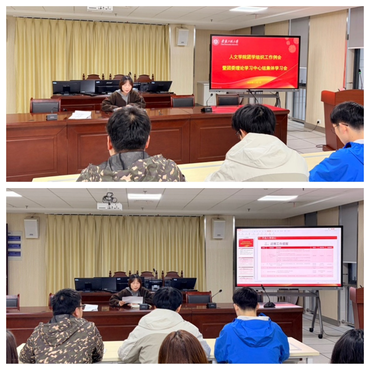 11月7日,人文学院团委组织召开了十一月份团学组织工作例会暨团委理论学习中心组集体学习会。学院团委书记、团委委员、各班班长、团支书等主要学生骨干参加了会议。